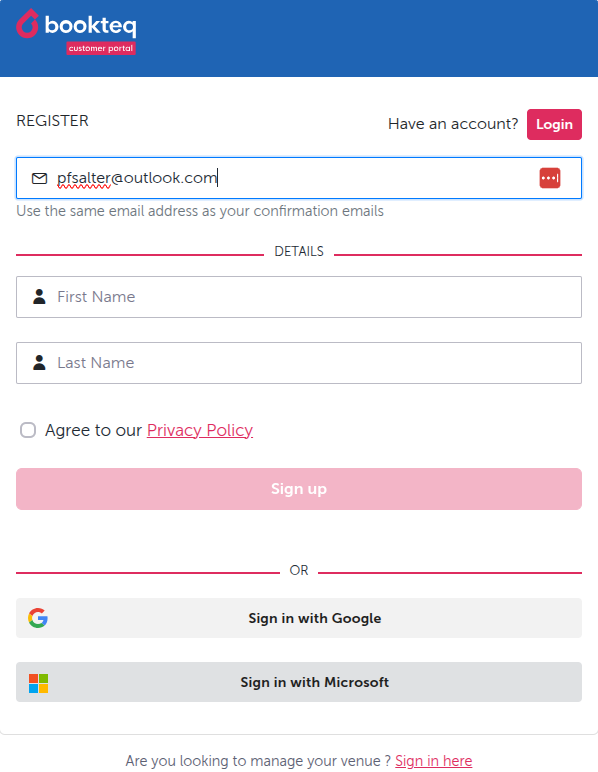 Your hirers will be able to log in to their Bookteq Customer Portal using their Google or Microsoft (Outlook, Hotmail or Live) email address, instead of using their password allowing for easier access to their portal account to manage their bookings! You will have noticed that you can now do the same in your Bookteq workspace as well for a simpler log in experience.