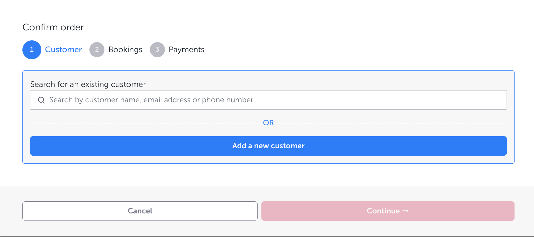 Here is where you can allocate the booking to either a new customer or a customer that has already been saved into the system previously.