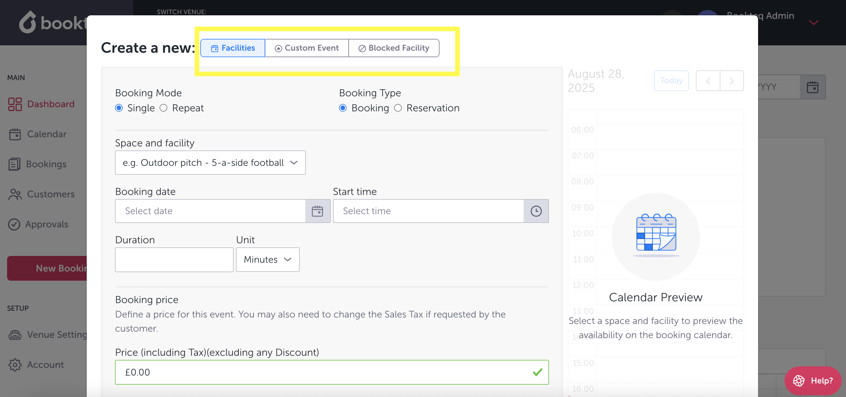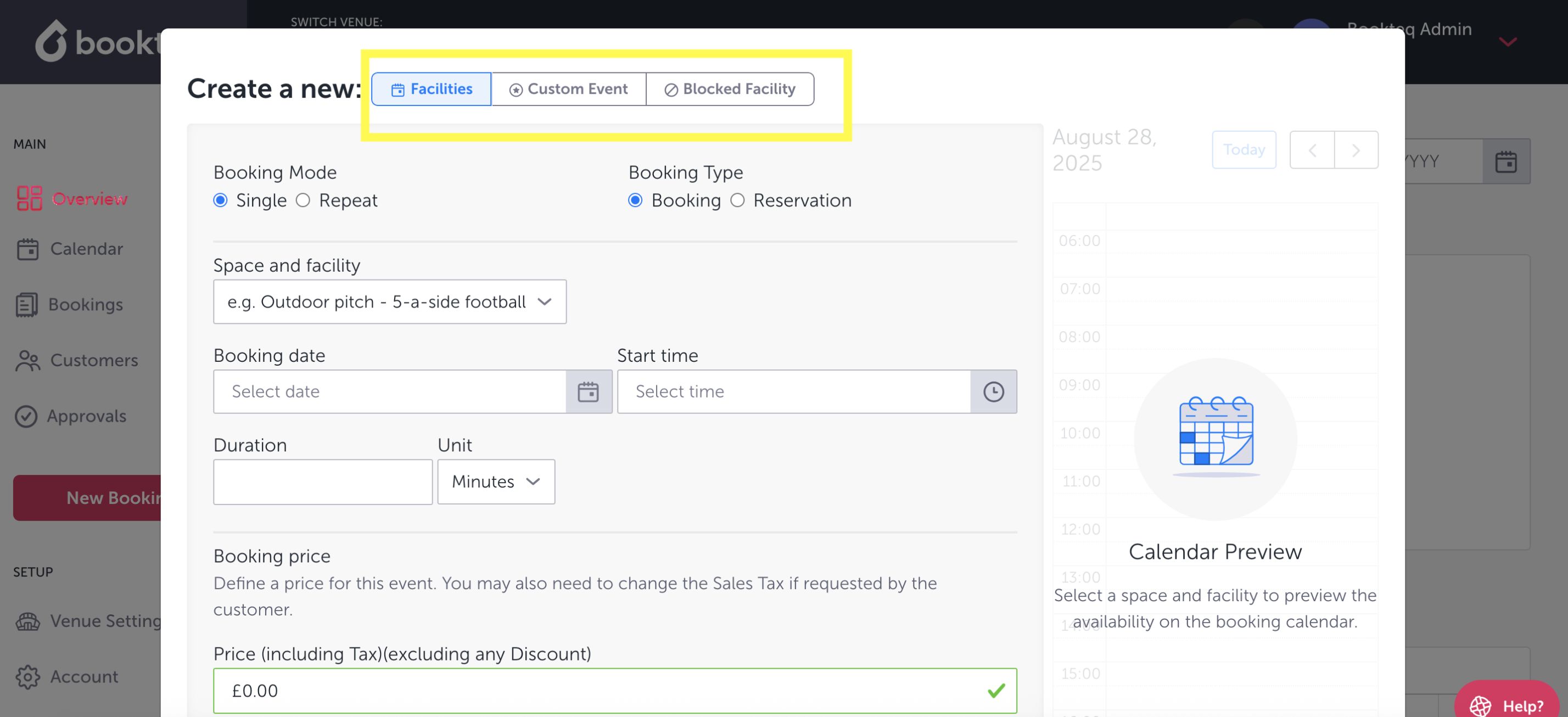 🚨 Please Note: that if you select reservation instead of booking, this will be unconfirmed for the customer until payment is taken; whereas, if you select booking it will be automatically confirmed when you add it to the system.