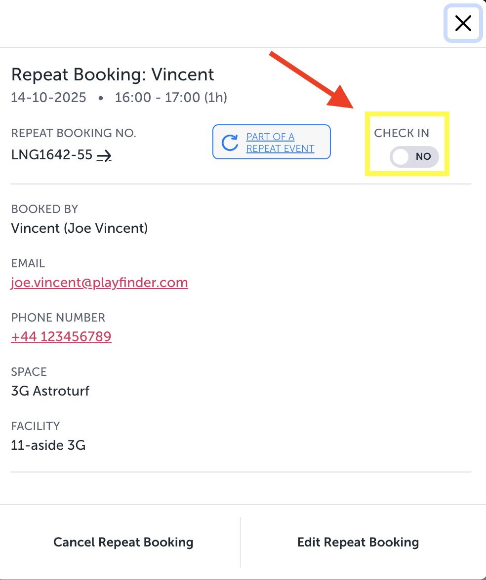 The check-in feature allows you to know who actually used the facility after booking. This is useful for your venue(s) to keep customer records updated.