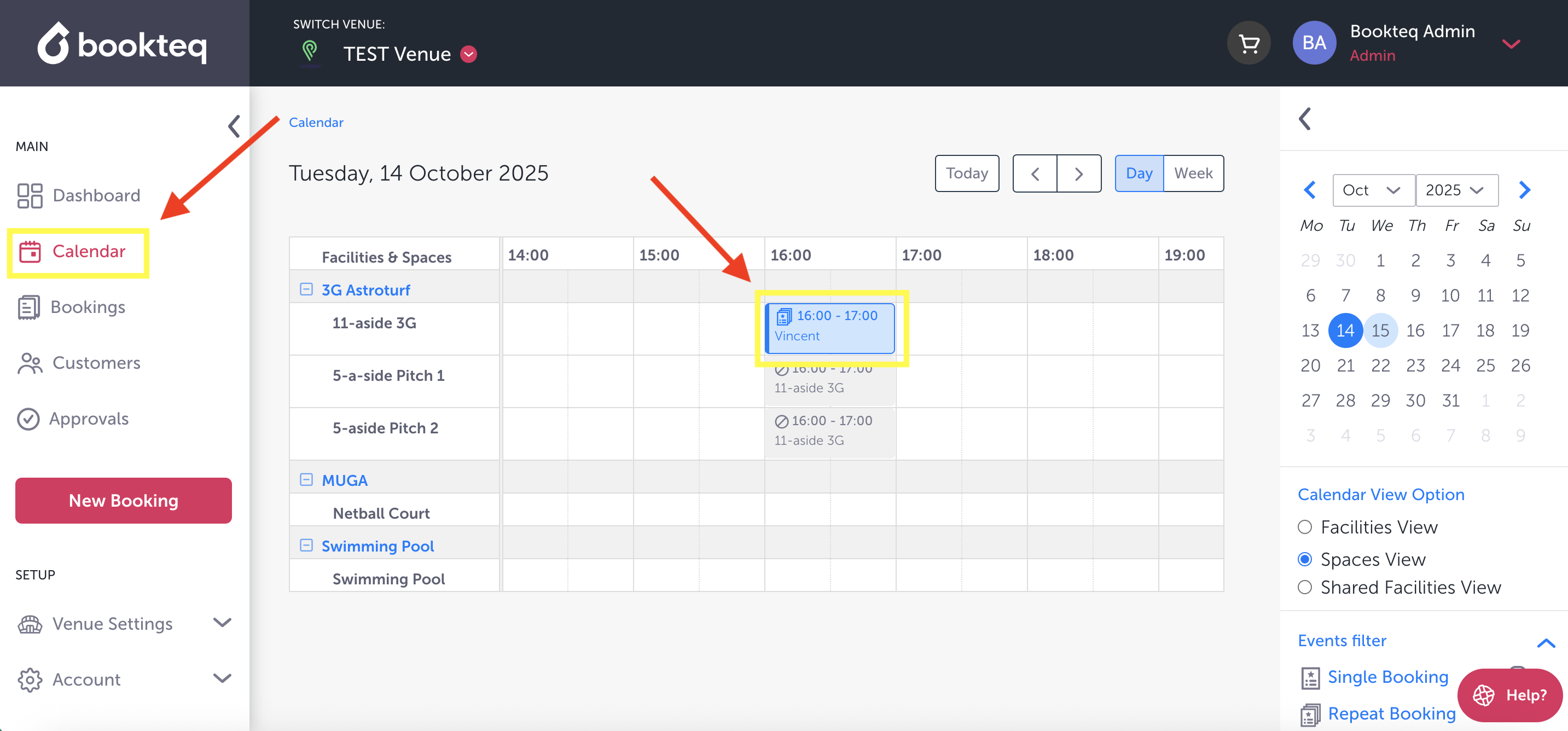Log into Bookteq and go to the Calendar tab. Then click on any booking you'd like to view or edit.
