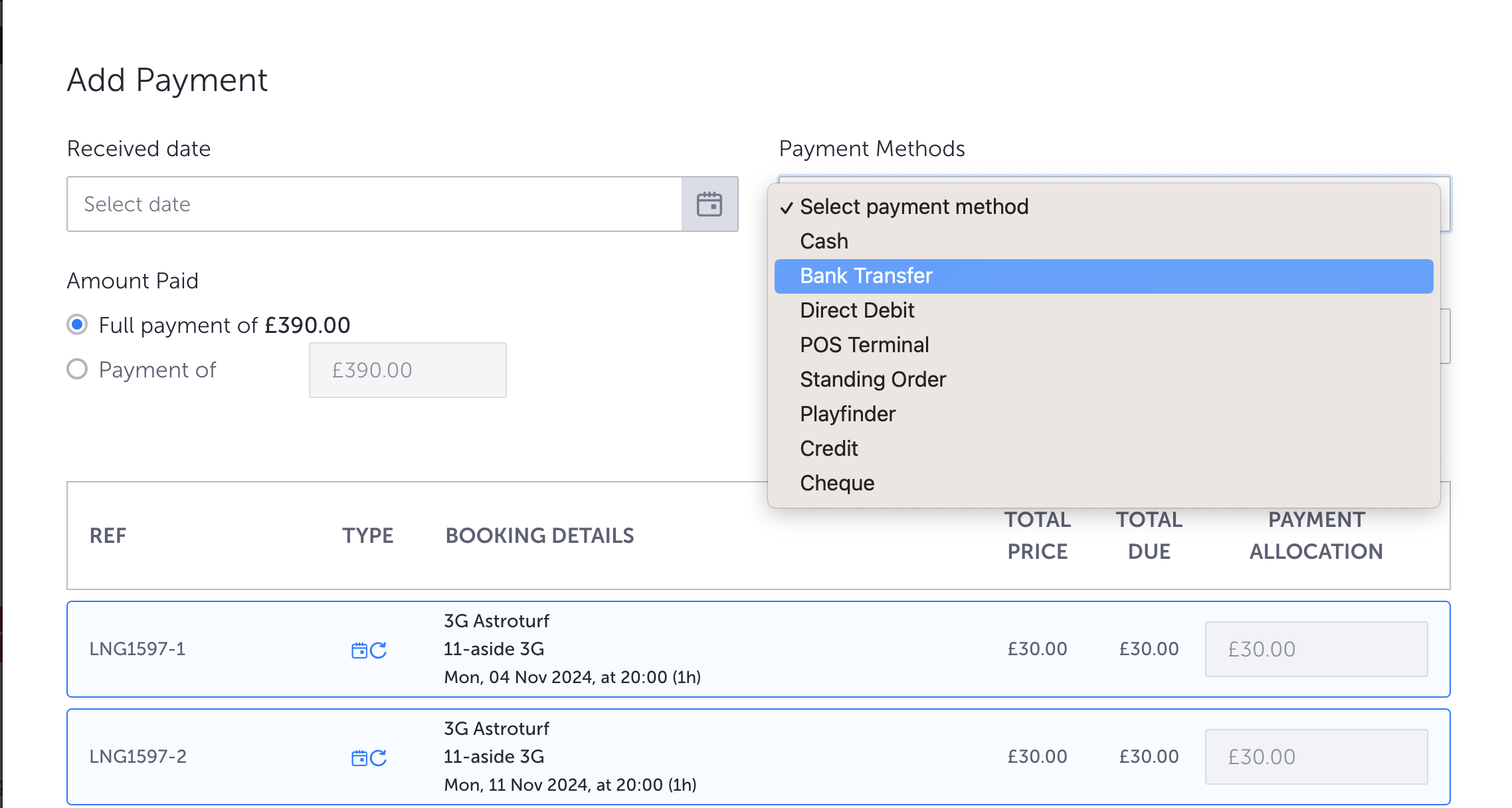 💡 Please note that Bookteq is built to primarily support online payments; however, we know that is not always the way the hirer pays. Direct debit is the only other form of offline payment Bookteq is working to support at the moment. Therefore, this form of reconciliation is our solution for situations where the hirer did not pay online.