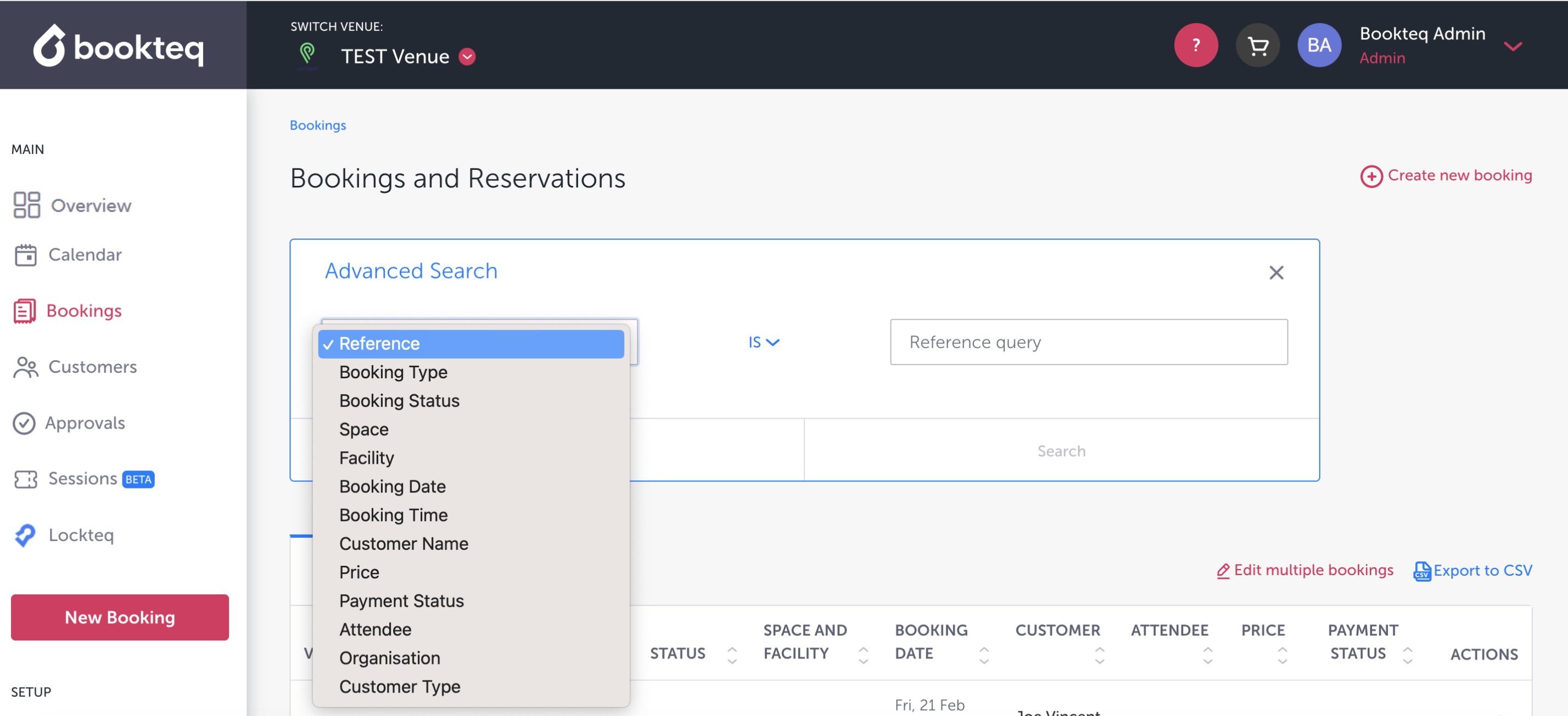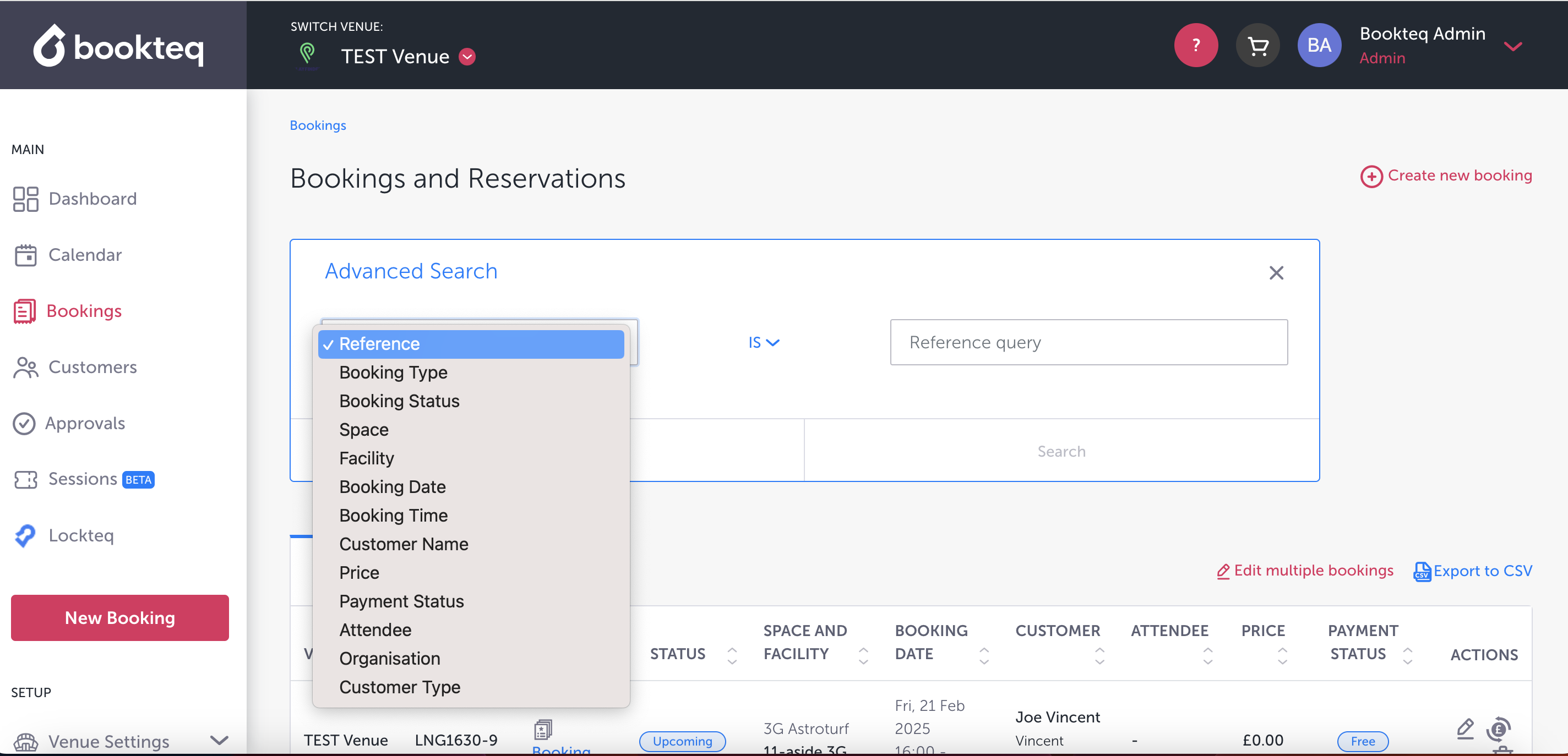 As a venue manager or team member operating within organisations you can now generate and download reports of booking data. For instance, you can use the advanced search to pull very specific reports on a certain hirer, or between certain dates, or even for a single facility.