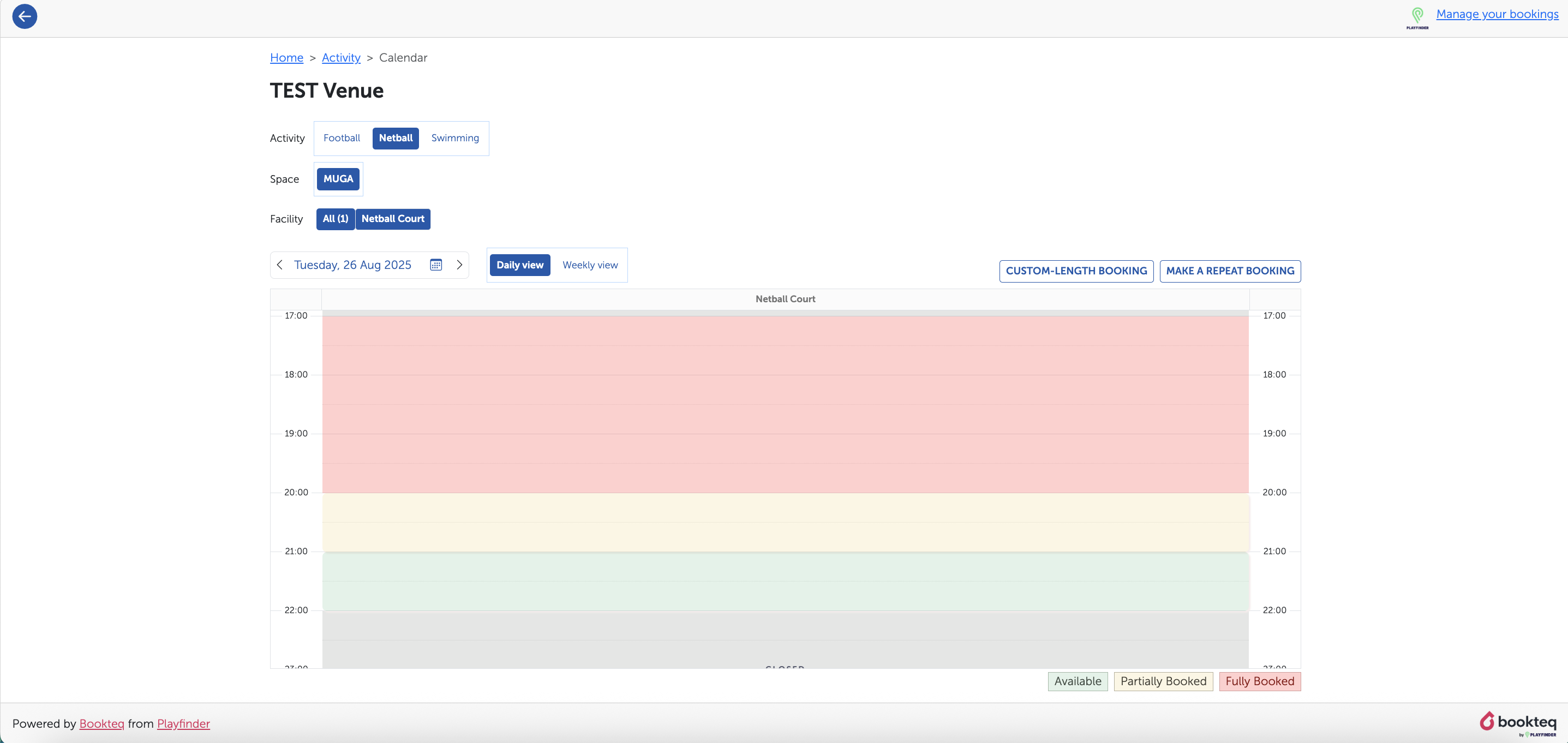 Facility selection - By ticking âShow all availability by defaultâ you will not give the hirer the option to select a specific court, pitch, or room. The system will display all facility availability on one calendar.