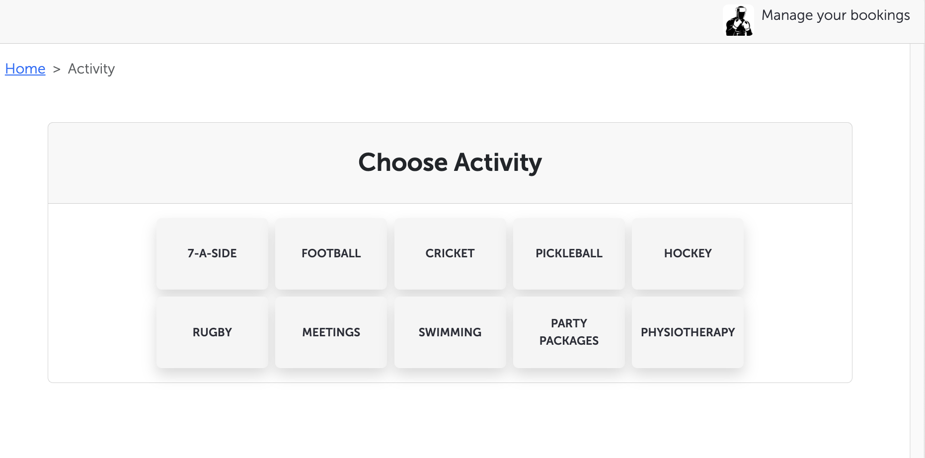 - Choose whether you want to look for the 'Space', 'Facility' or 'Activity' to narrow down your search with different selections easy to navigate all in one place.