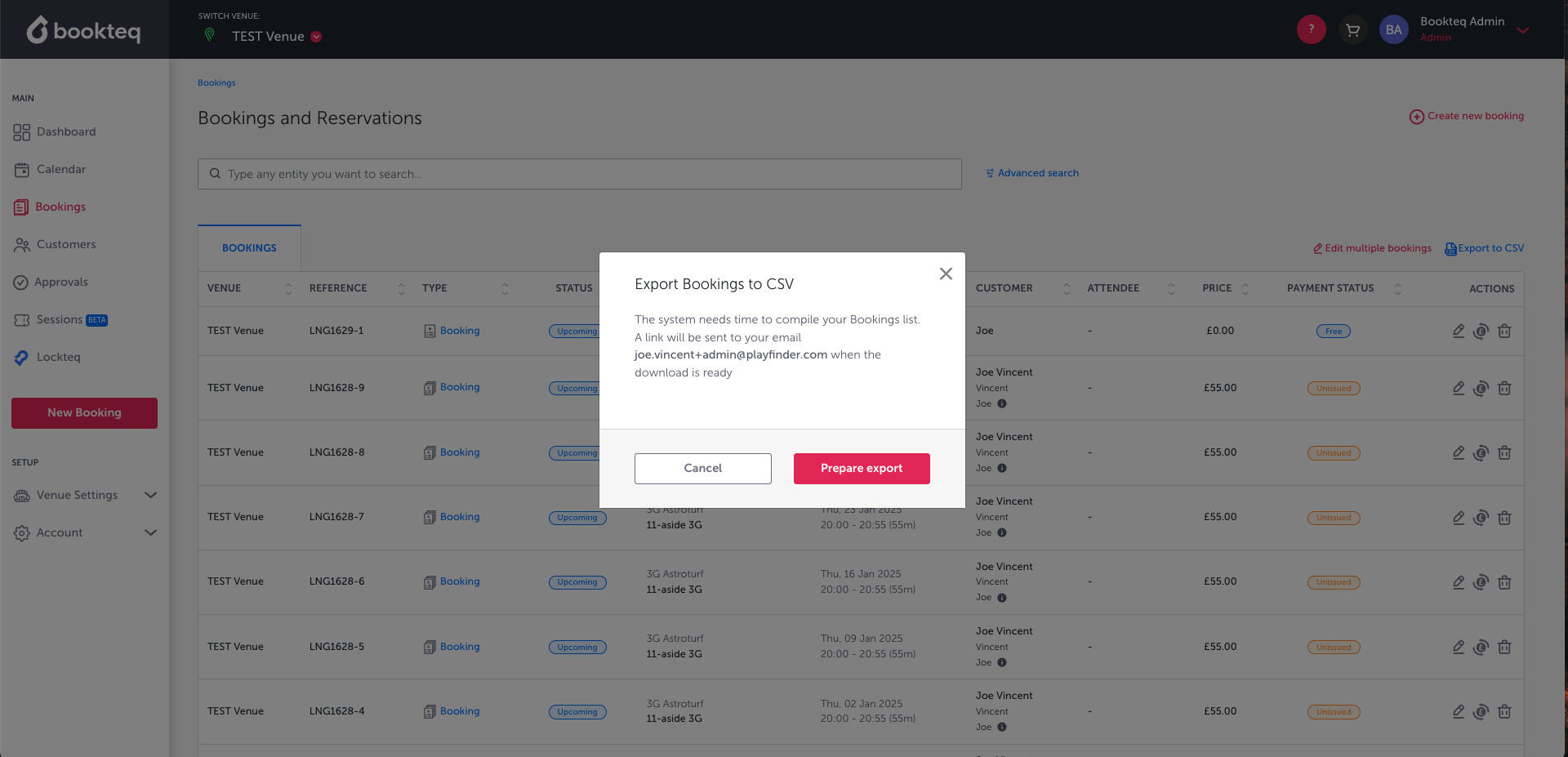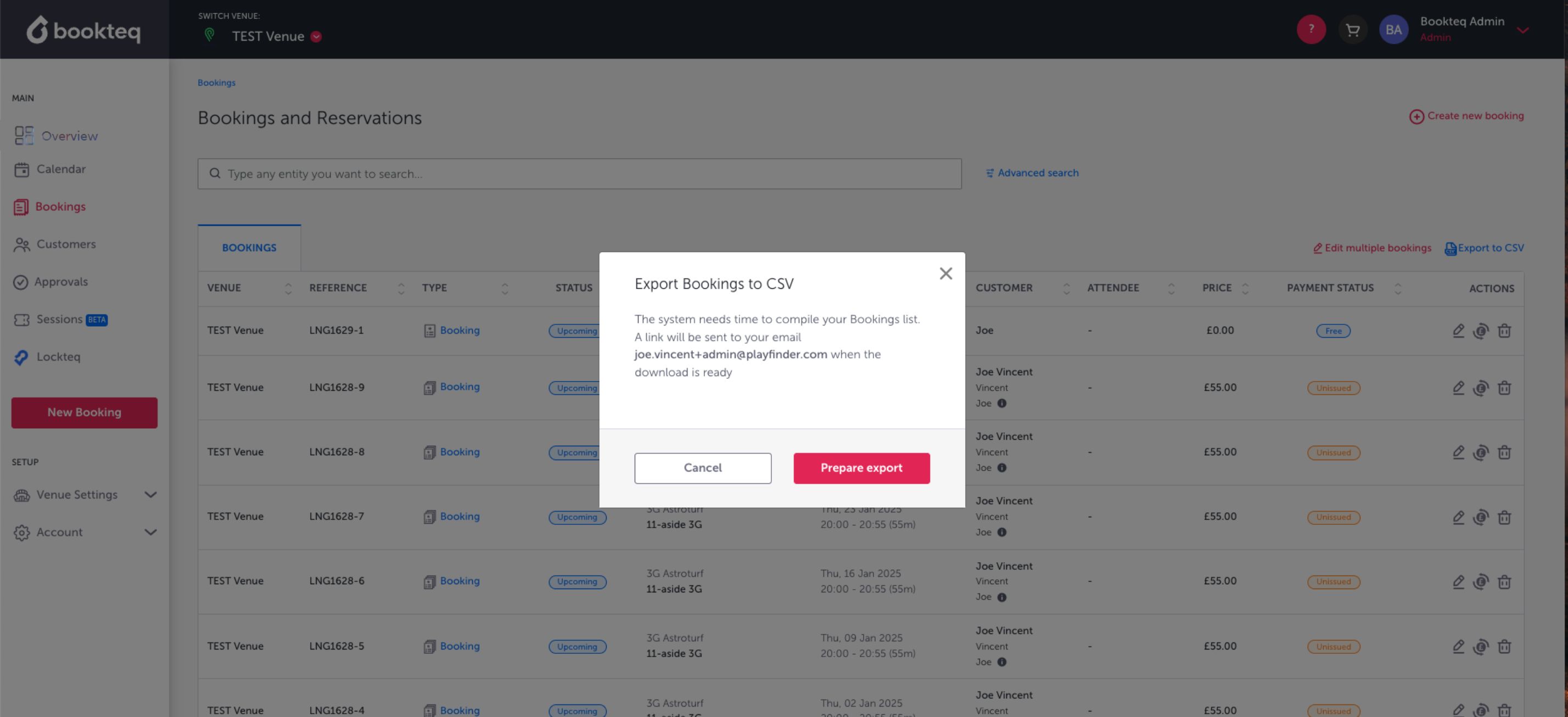 - Navigate to the Bookings tab in your Bookteq workspace.